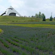 食後は、丘の中にたたずむ三角屋根の塔が特徴的な美馬牛小学校(びばうししょうがっこう)を車窓で眺めて、富良野の超有名スポット「ファーム富田」へ向かいます。